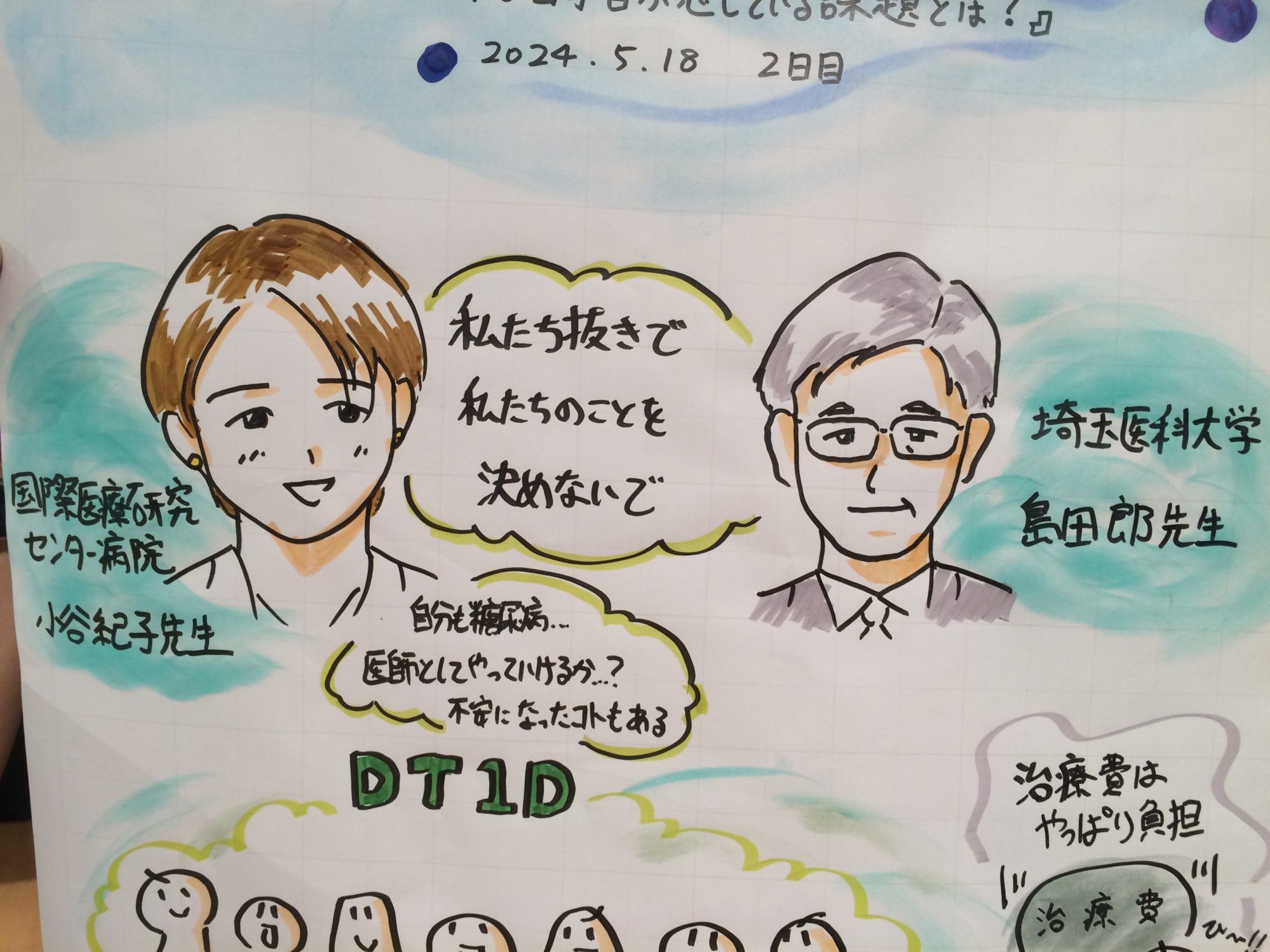 ★島田先生が座長をされた会長特別企画「糖尿病とともに生活する人々の声をきくー社会・生活の中で当事者が感じている課題とは?ー」では、来場された多くの糖尿病のある人からStigmaに関する生の声を聞くことができ、医療従事者や社会に対して重要なメッセージをたくさん残してくださいました(下のポスターは主催者側に確認し了承を得た上で掲載しています)。