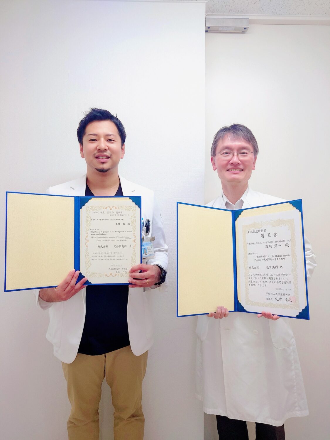 里村先生は今年度シカゴで開催されました、the American Diabetes Association 85th Scientificにおいて「Significance of Glucagon in the Development of Ketosis-prone Type 2 diabetes」を発表され、今後の本学の医学研究の発展への貢献が期待され、本賞を受賞しました。