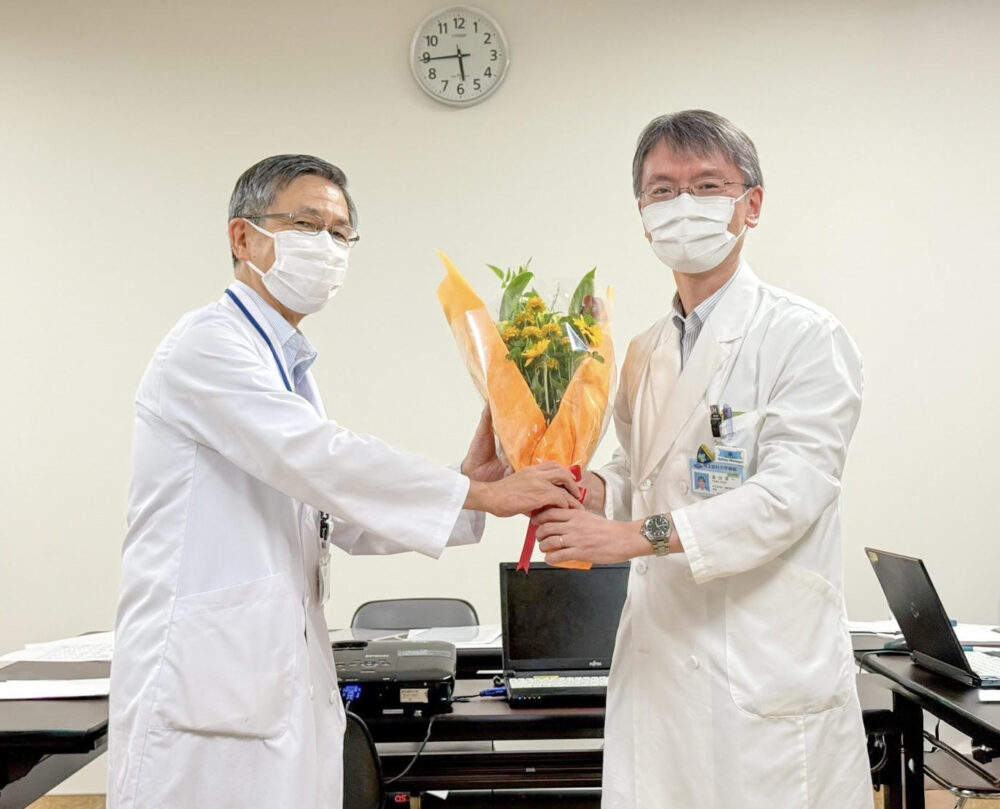 医局会では、次期診療部長の及川教授より花束が贈呈されました。